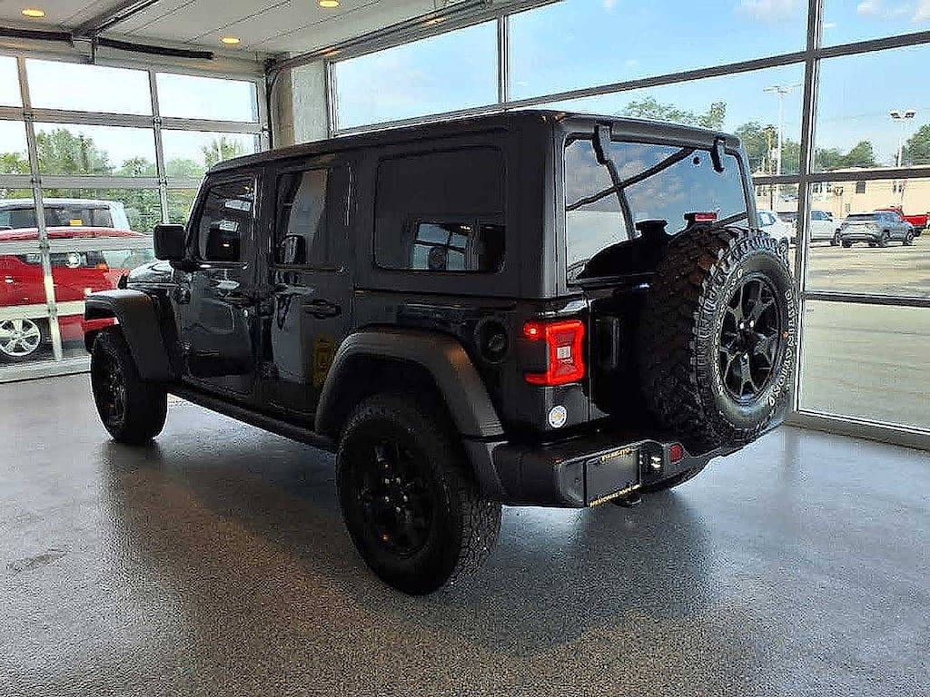 QUICK ORDER PACKAGE 22W WILLYS Engine: 2.0L I4 DOHC DI Turbo w/ESS, Transmission: 8-Speed Automatic (850RE), Willys, Mold In Color Bumper w/Gloss Black, Speed Sensitive Power Locks, Automatic Headlamps, Leather Wrapped Steering Wheel, Black Trail Rated Badge, 4-Wheel Drive Swing Gate Decal, Black Grille, MOPAR All-Weather Floor Mats, Willys Hood Decal, Rock Protection Sill Rails, Front 1-Touch Down Power Windows, Power Heated Mirrors, Wrangler Decal, Matte Black Jeep Badge, Security Alarm, Remote Keyless Entry, Sun Visors w/Illuminated Vanity Mirrors, Front LED Fog Lamps, LED Premium Reflector Headlamps, TRANSMISSION: 8-SPEED AUTOMATIC (850RE), BLACK 3-PIECE HARD TOP Freedom Panel Storage Bag, Rear Window Defroster, Rear Window Wiper/Washer, No Soft Top, TECHNOLOGY GROUP Google Android Auto®, Cluster 7.0" TFT Color Display, SiriusXM Satellite Radio, SiriusXM Radio Service, For More Info, Call 800-643-2112, USB Host Flip, Integrated Center Stack Radio, 7.0" Touchscreen Display, Air Conditioning w/Auto Temp Control, Radio: Uconnect 4 w/7" Display, Apple CarPlay®, Air Filtering, GPS Antenna Input, COLD WEATHER GROUP Heated Steering Wheel, Heated Front Seats, SAFETY GROUP ParkSense Rear Park Assist System, Blind Spot & Cross Path Detection, LED Taillamps, Injection Molded Black Rear Bumper, CONVENIENCE GROUP Universal Garage Door Opener, ENGINE: 2.0L I4 DOHC DI TURBO W/ESS.